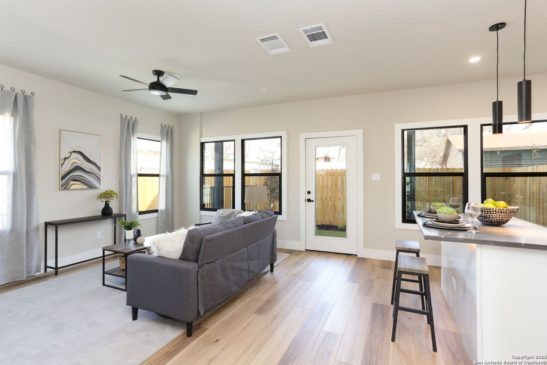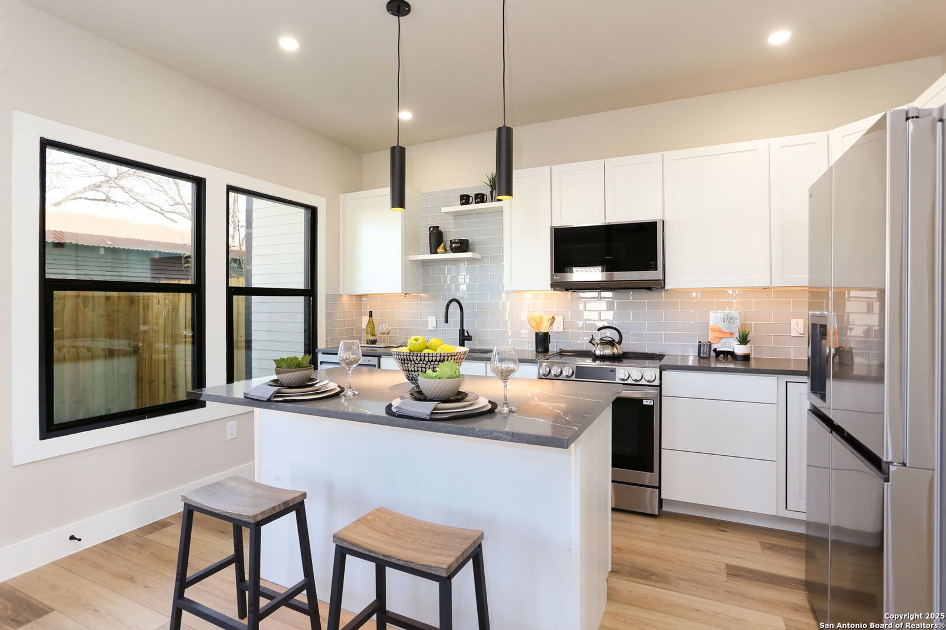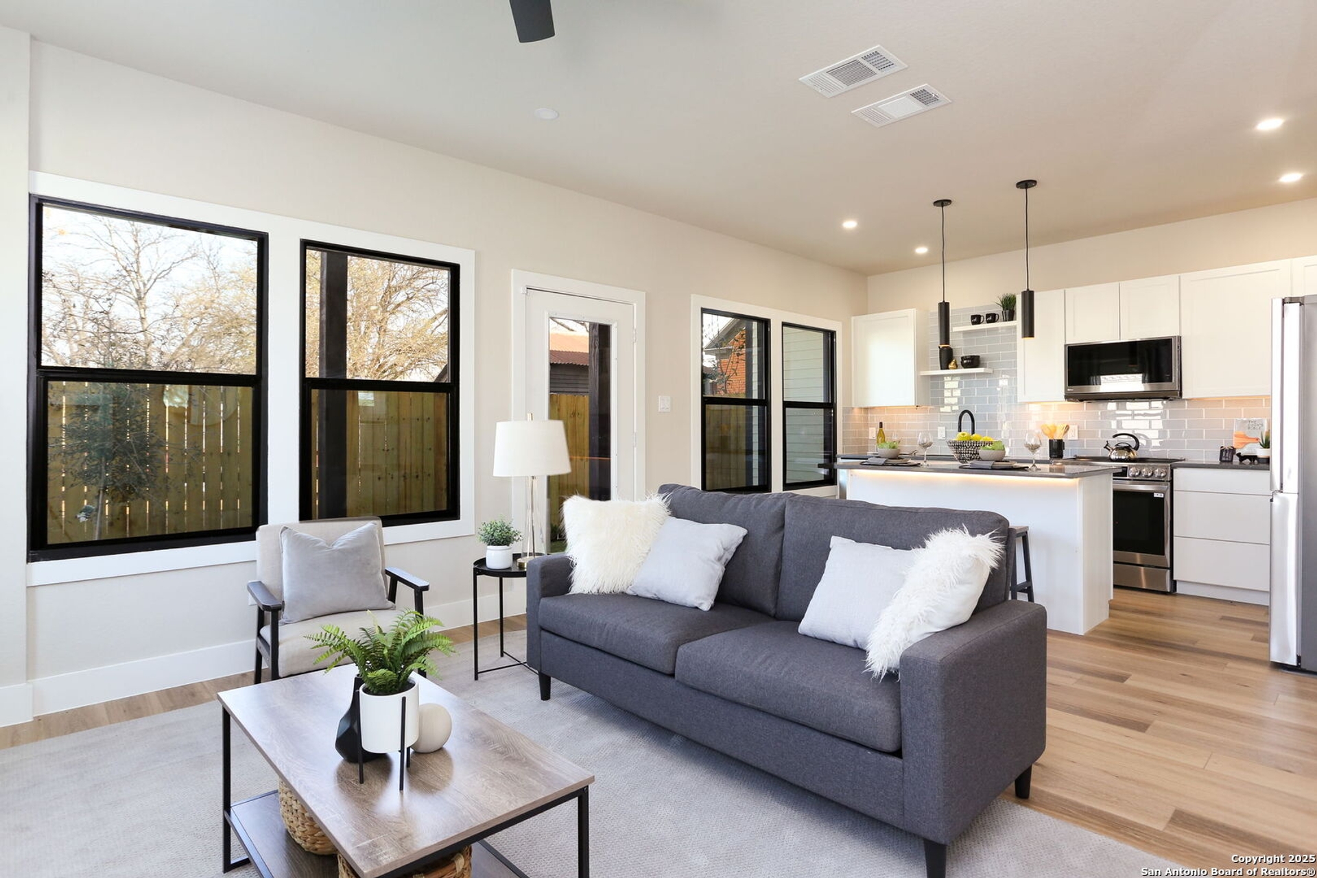 *OPEN HOUSE | September 6th 2:30-4:30pm* Discover modern city living at Unit 201 in Linden Rivercenter, a 3-bedroom, 3-bathroom townhome offering 1,646 sq ft of stylish and efficient space just east of downtown San Antonio. This beautifully designed home is located in one of the city's most walkable and culturally rich areas-only 0.3 miles from the scenic San Antonio River Walk, 0.4 miles from the San Antonio Museum of Art, and just 0.7 miles from the upcoming Project Marvel sports and entertainment district. The Pearl District is 1.5 miles away, known for its restaurants, shops, and weekend farmers markets, while the Alamodome is only 1.2 miles away, offering easy access to major events and concerts. The first floor features an open-concept kitchen, dining, and living space with one bedroom and a full bath-ideal for guests or flexible living. Upstairs, the spacious primary suite boasts a walk-in closet, en-suite bath, and private balcony, while a third bedroom includes its own full bath and walk-in closet. A TV loft and laundry area complete the second floor. Linden Rivercenter is a green-conscious community with private parking, bike and scooter racks, and tranquil green spaces. Enjoy the best of urban living with quick access to downtown, the AT&T Center, Hays Street Bridge, and San Antonio's top attractions-all from a thoughtfully designed, modern home.